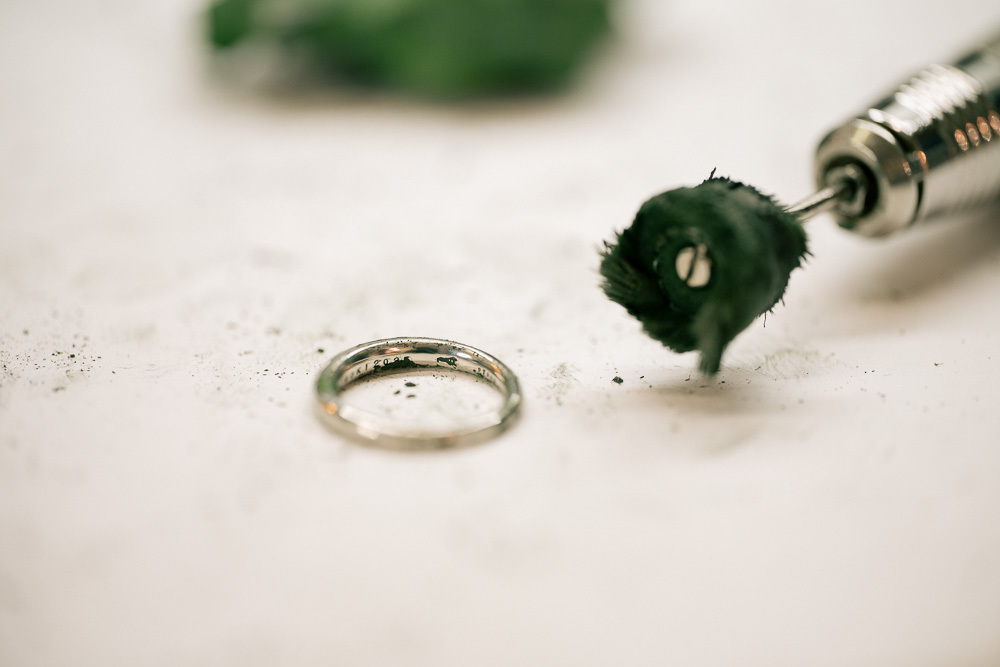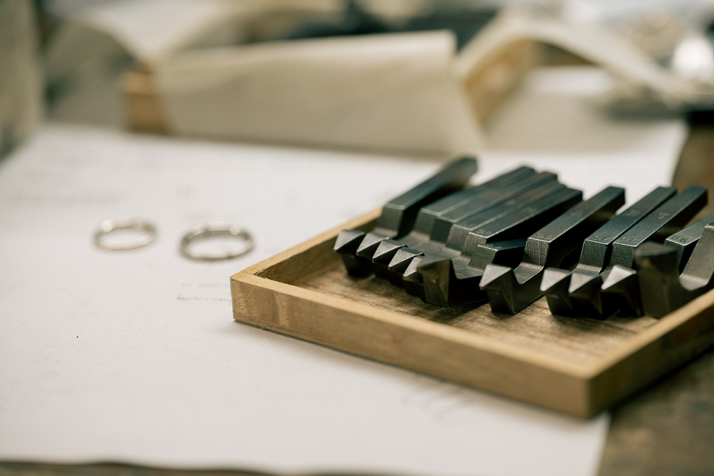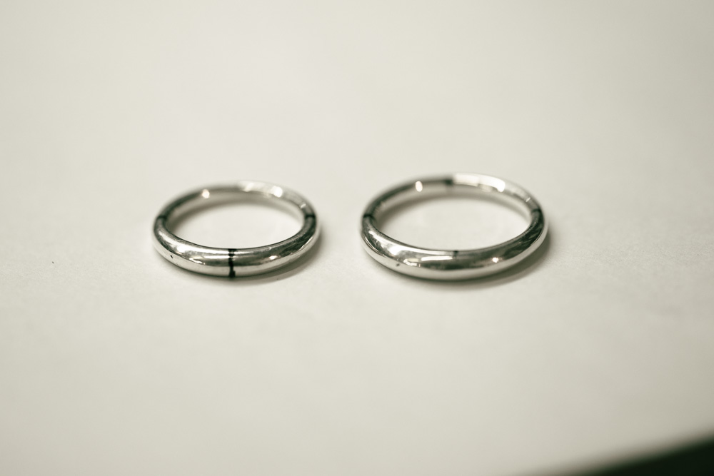 今回の制作で内側に施す刻印を先に行ったのは、打ち込み時に指輪の外側に生じる、わずかな変形を完全に消す必要があったからでした。