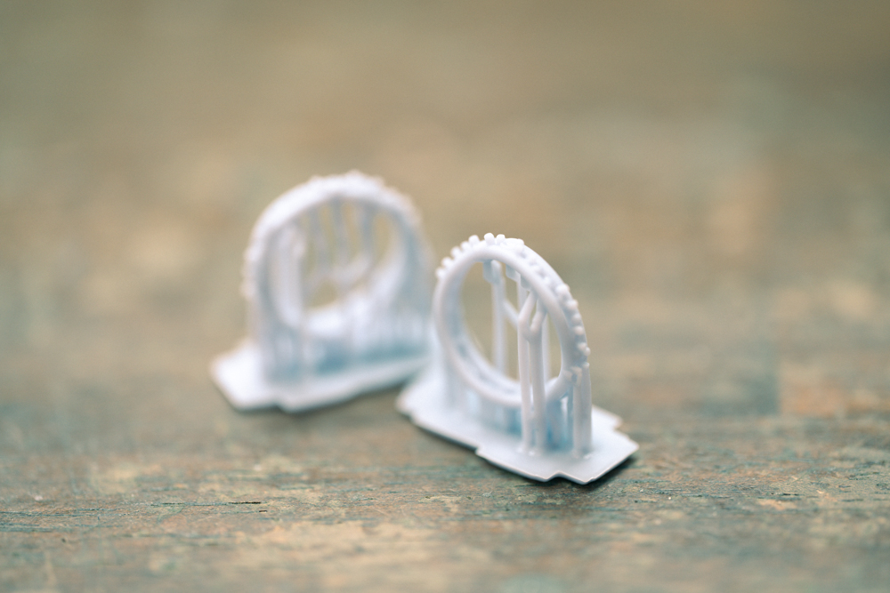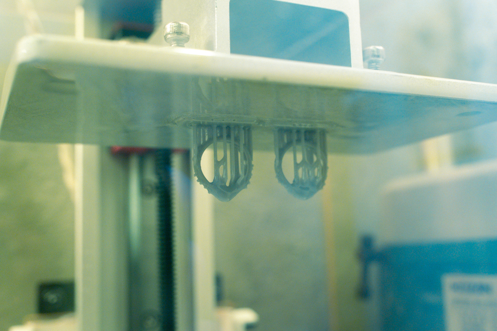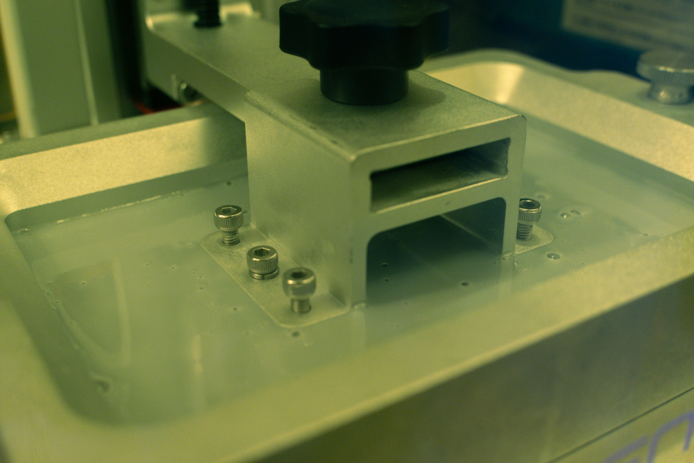 液体レジンの中で少しずつ形ができあがっていきます。このころちょうど寒波が襲来していて、温度計片手にカイロを機械に貼ったりして液を温めていました笑